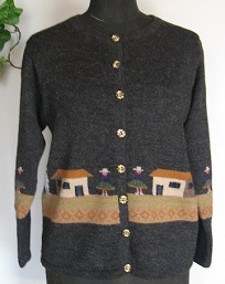 インタルシア カーデガン [ Cdo.fol-01 ] アルパカ100%(スーパーファイン) ※付属品は含まれません 黒がベース エリはラウンドタイプです アンデスの風景を編込みました フォルクローレ調の逸品 人気のアイテムです |