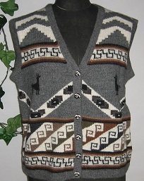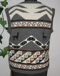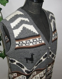 インタルシア ベスト [ Cdo.fol-103 ] アルパカ100%(スーパーファイン) グレーがベース エリは着やすいVカットです アンデスの風景を編込みました フォルクローレ調の逸品 ベストは人気のアイテムです |
