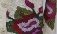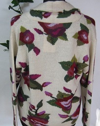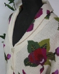 インタルシア カーデガン [ Cdo.kde-01 ] アルパカ100%(スーパーファイン) サイズ M〜L オフホワイトがベース ヘチマエリが特徴です 深紅の花を大柄にあしらった おしゃれな大人向けの逸品です |