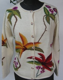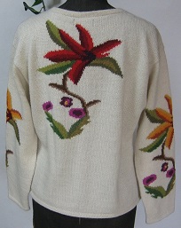インタルシア カーデガン] [ Cdo.kde-03 ] アルパカ100%(スーパーファイン) ベースはオフホワイト エリはラウンドタイプです あでやかな花を大胆に編込んだ 常夏の国を思わせる逸品です |