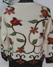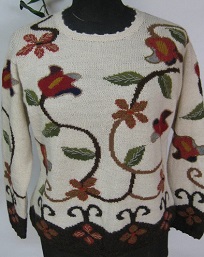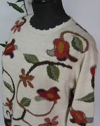 インタルシア セーター [ Cdo.sta-04 ] アルパカ100%(SF) ベースはオフホワイト エリはラウンドタイプです 色とりどりの花を編込み かわいらしさの中に優雅さを感じる 最高級の逸品です |