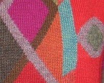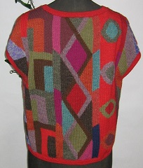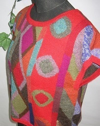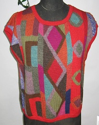 インタルシア ベスト [ Cdo.vst-101 ] アルパカ100%(スーパーファイン) 赤がベース 丈が短めのかぶりタイプ 下からブラウスを出して着るとオシャレ 感がアップ 幾何学模様を色を駆使して編込ん だ逸品です ベストは人気のアイテムです |