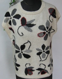 インタルシア ベスト [ Cdo.vst-104 ] アルパカ100%(スーパーファイン) オフホワイトがベース 短めの丈、かぶりタイプです 下のブラウスを見せた着方で オシャレ感アップ 大人っぽい色合いが特徴の逸品 ベストは人気のアイテムです |