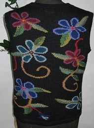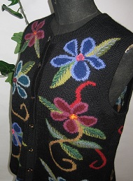 インタルシア ベスト [ Cdo.vst-03 ] アルパカ100%(スーパーファイン) 黒色がベース エリはラウンドタイプです 色とりどりの花を編込みました 華やかな逸品です ベストは人気のアイテムです |