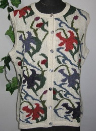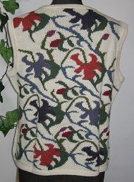 インタルシア ベスト [ Cdo.vst-04 ] アルパカ100%(スーパーファイン) オフホワイトがベース エリはラウンドタイプです 色とりどりの花を編込んでます 編込みの粋を極めた逸品 ベストは人気のアイテムです |
